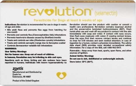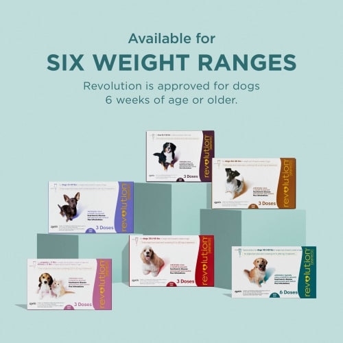 Do not use Revolution on sick, weak, or underweight dogs. Use only on dogs 6 weeks and older. Prior to administration, dogs should be tested for heartworms. In people, Revolution may be irritating to skin and eyes. Wash hands after use. See full Prescribing Information at RevolutionForDogsandCatsPI.com.