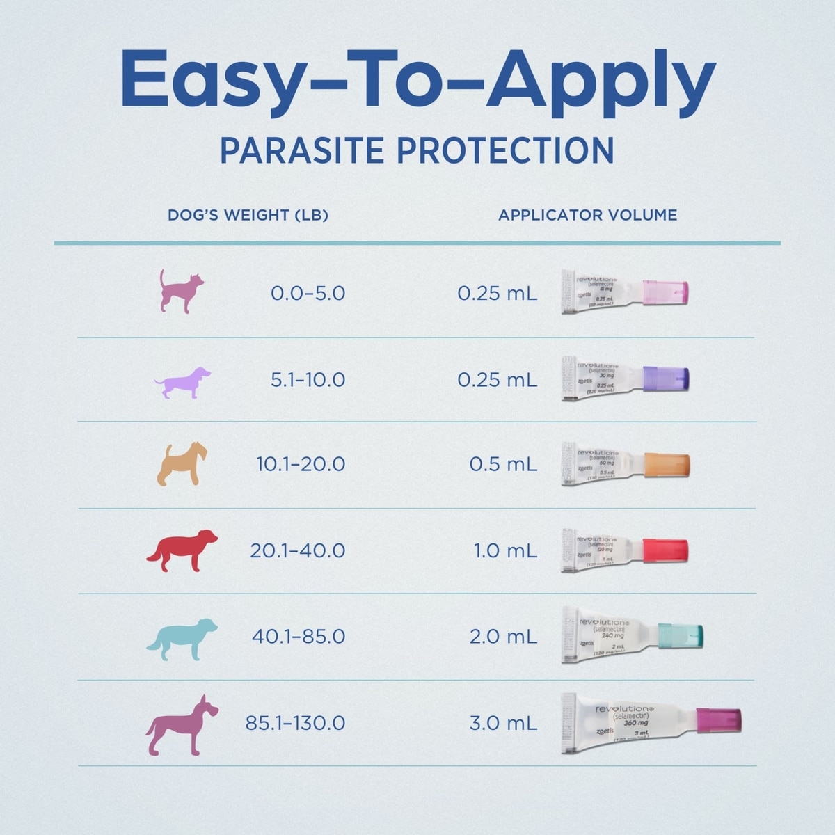 Revolution is easy to apply—there’s no need to hassle with larger-volume topicals or pills. Unlike other brands, Revolution doesn’t require gloves for application.