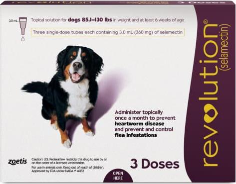 Revolution Topical Solution for Dogs, 85.1-130 lbs, (Plum Box), 3 Doses (3-mos. supply)