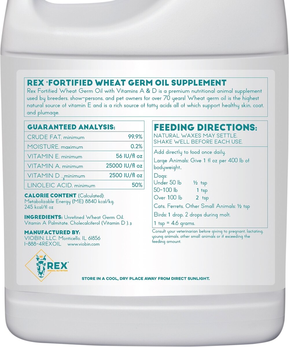 REX Fortified Wheat Germ Oil Dog, Cat, Horse & Small Pet Supplement, 32-fl oz bottle
