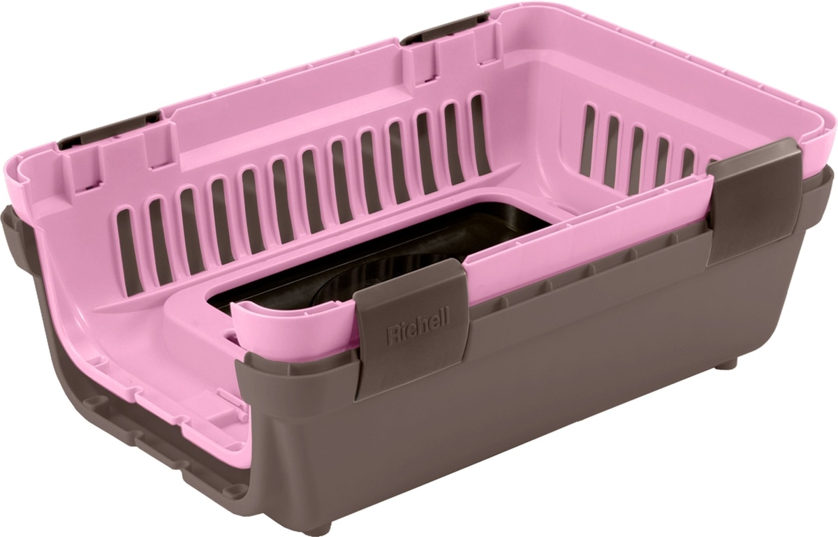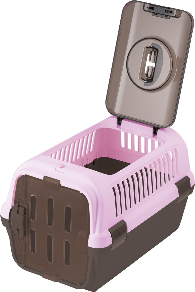 Richell Double Door Cat & Dog Carrier, Pink/Brown, Medium