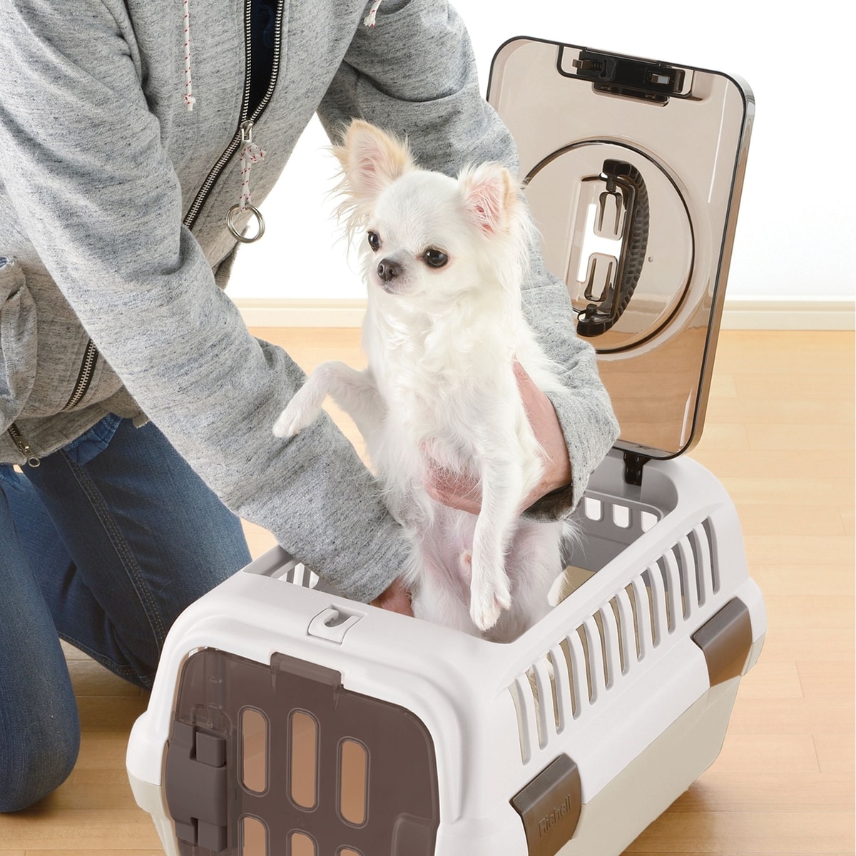 Richell Double Door Cat & Dog Carrier, White/Beige, Medium