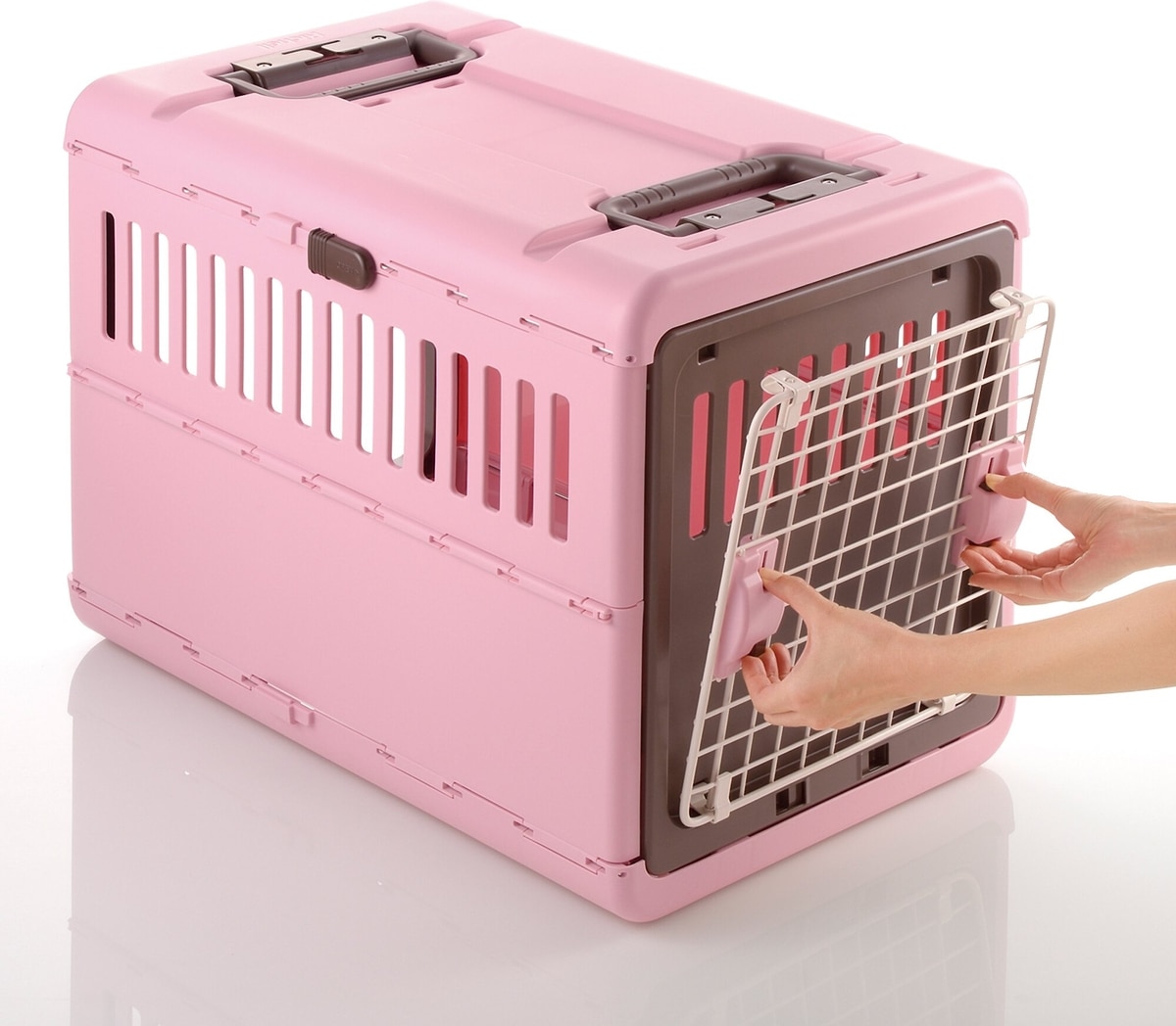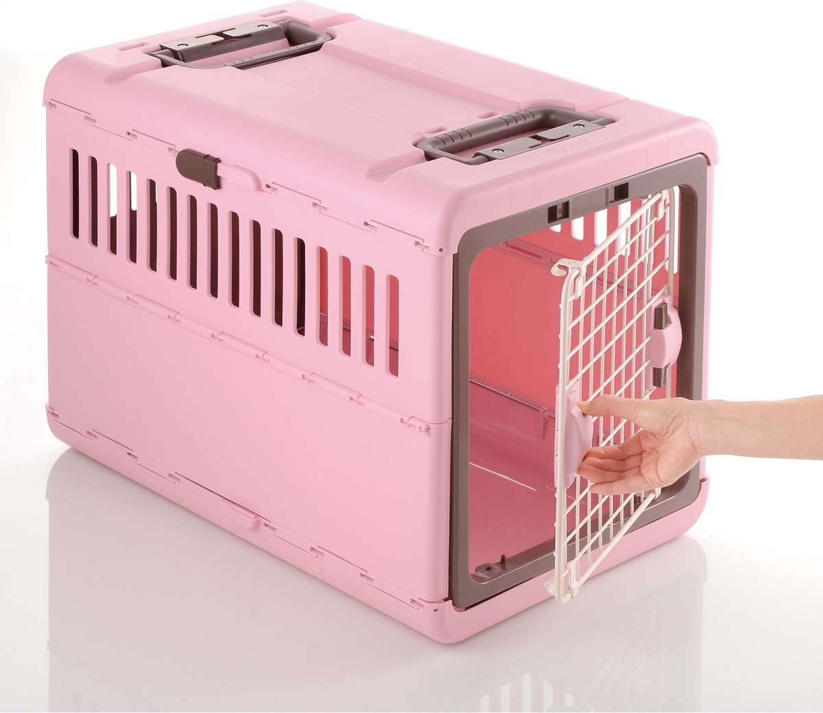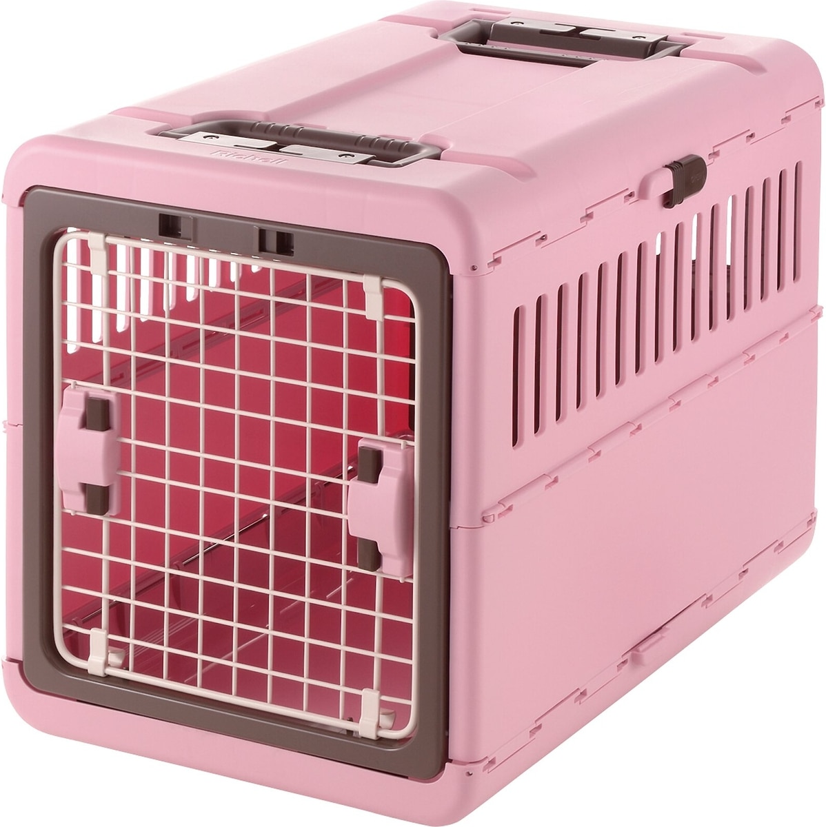 Richell Foldable Dog & Cat Carrier, Soft Pink & Brown, Medium