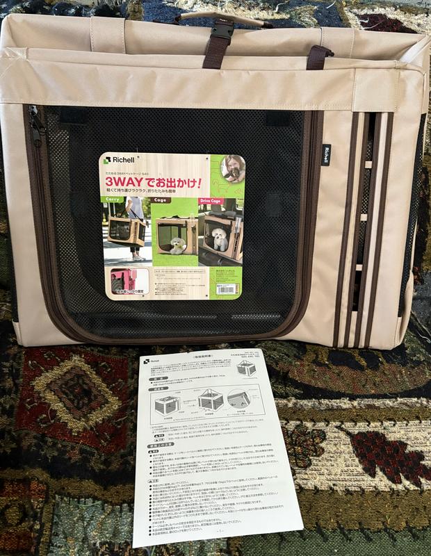 Richell Foldable Travel 3-Way Collapsible Soft-Sided Dog & Cat Crate, Tan, Small/Medium