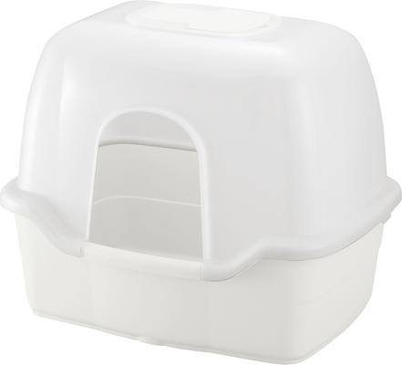 Richell Paw Trax Wide Hooded Cat Litter Box, White