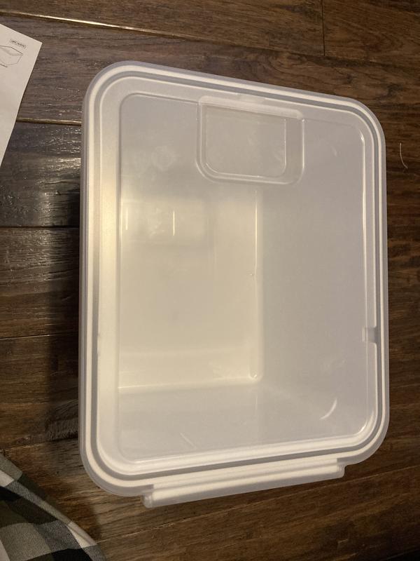 This is advertised as a pet food container but the lid doesn't latch. You put in the rubber seal and then the lid just rests down on it. Its a nice bin for storage,