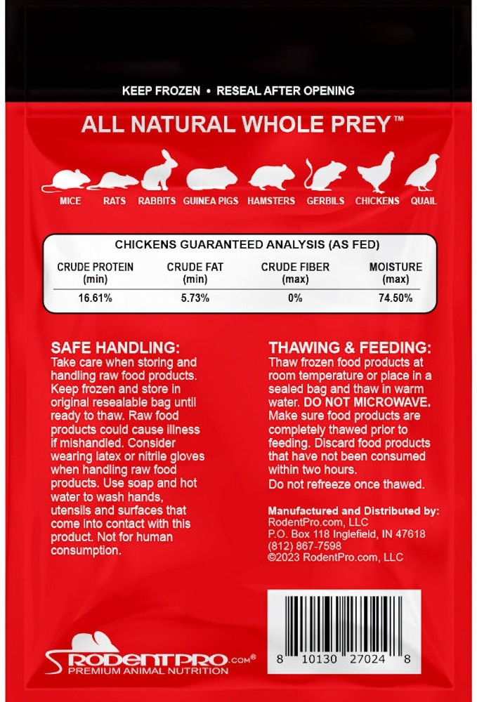 Rodent Pro Frozen Reptile Food, X-Small Chickens, 25 count