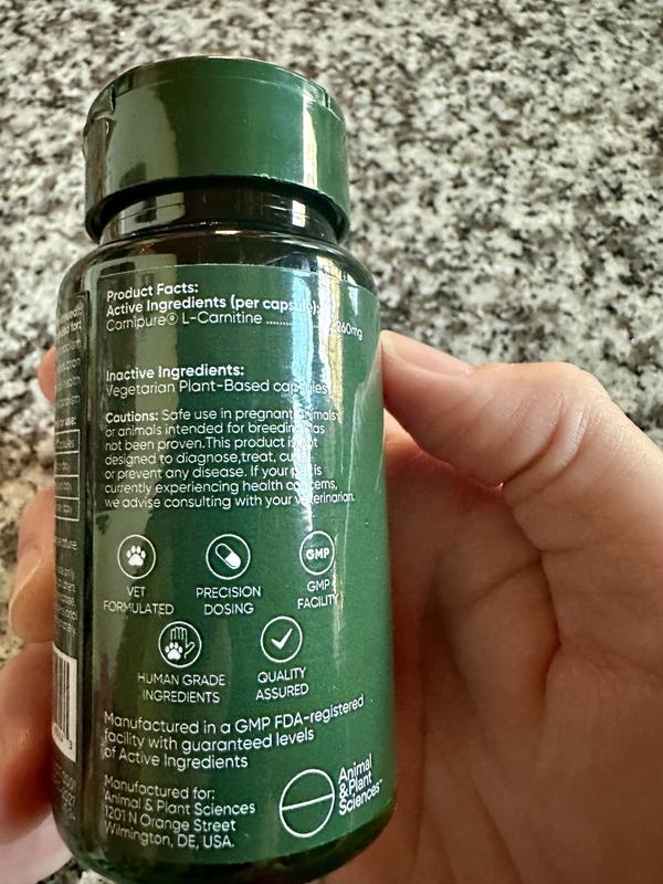 - These capsules feature L-carnitine to help your furbaby maintain a healthy weight by converting fat into energy, possibly helping avoid weight-related health problems like joint issues, diabetes, and heart disease.