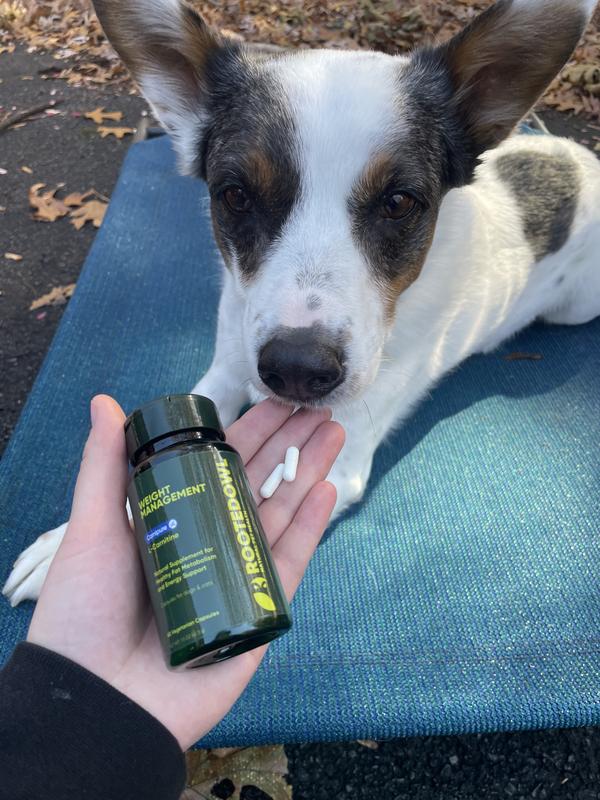 Parker has been less active as he's getting older and I have noticed some weight gain. Adding the Rooted Owl Natural Weight Management supplement to his routine has been a great choice for us! He has had no negative side effects or reactions to taking this. I put the whole capsule in his bowl with dinner and he eats them no problem! These are also easy enough to fit in a pill pocket if your dog is more picky about supplements.
