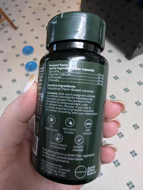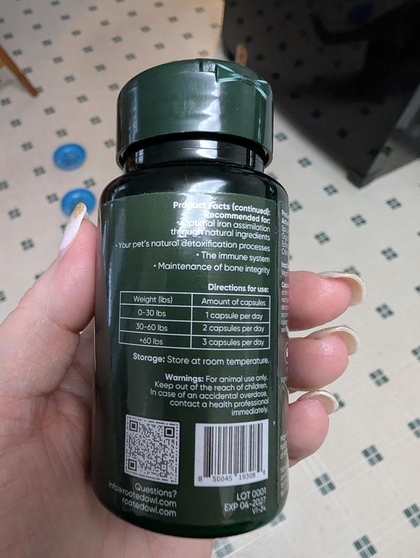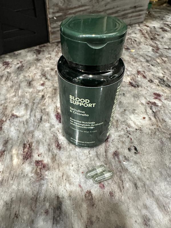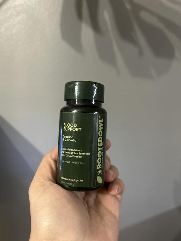 Rooted Owl Natural Blood Support Vegan Capsules Supplement with Spirulina & Chlorella for Dogs & Cats, 60 count