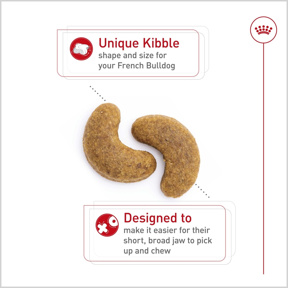 The tailor-made dry dog food kibble is exclusively designed to make it easy for your Frenchie to pick up and chew.