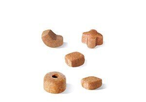 The kibble is designed with specific shape, size and texture for each breed’s facial and jaw structure and biting pattern.