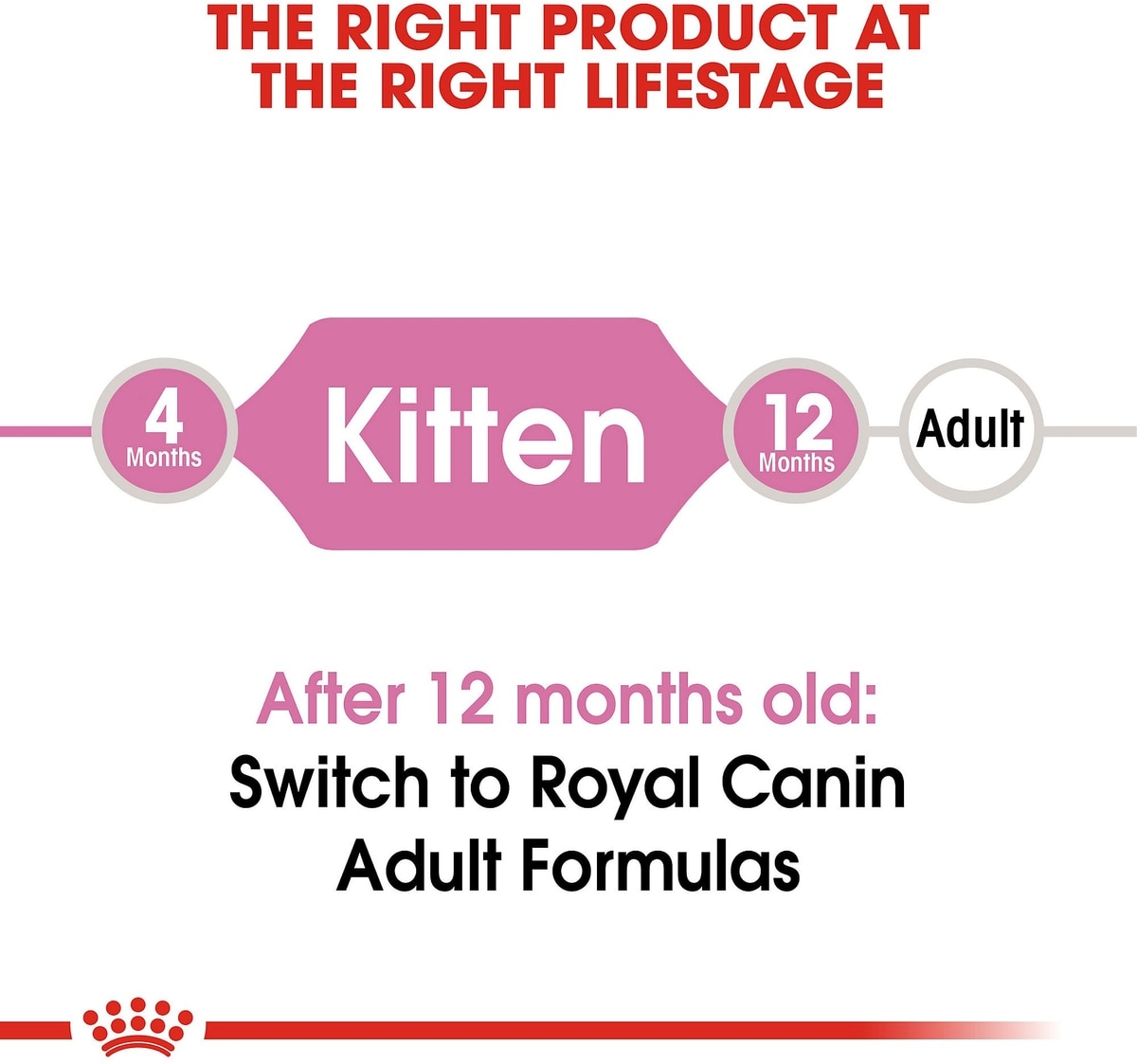 This product is formulated for the second stage of kittenhood, between 4 months and 1 year. It also has more calories per cup.