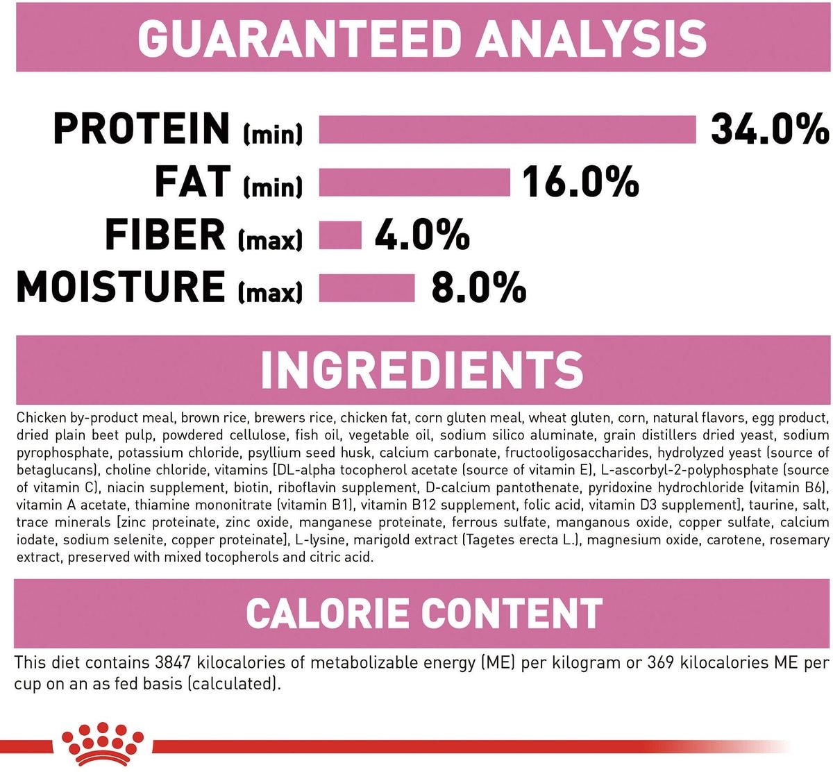 Chicken by-product meal contains the parts of a chicken that remain after the meat is removed, this can include the lungs, spleen, liver, and kidneys for instance. Using chicken by-product meal instead of chicken meal, allows Royal Canin to maintain its highly customized nutrient standards while achieving a more secure and sustainable supply.