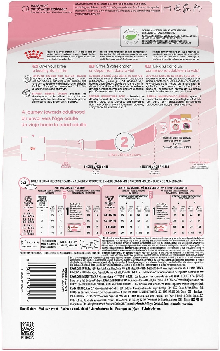 This recipe is formulated for the specific needs of growing baby kittens (1-4 months) and queen cats (pregnant or nursing).