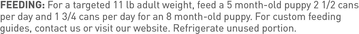We have a 2 pound puppy and she came home to us with this from the breeder. We immediately bought a case of it. She enjoys it mixed with her royal canin kibble at each meal and is up to 3 pounds in a month!