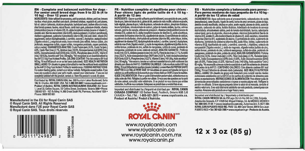 Royal Canin Small Aging Wet Dog Food, 3-oz pouch, case of 12, 3-oz pouch, case of 12, bundle of 2