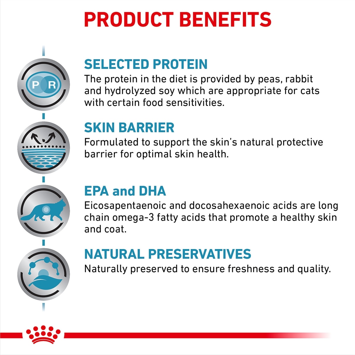 • Essential nutrients help support healthy skin and its natural barrier in cats with sensitive, irritable skin.