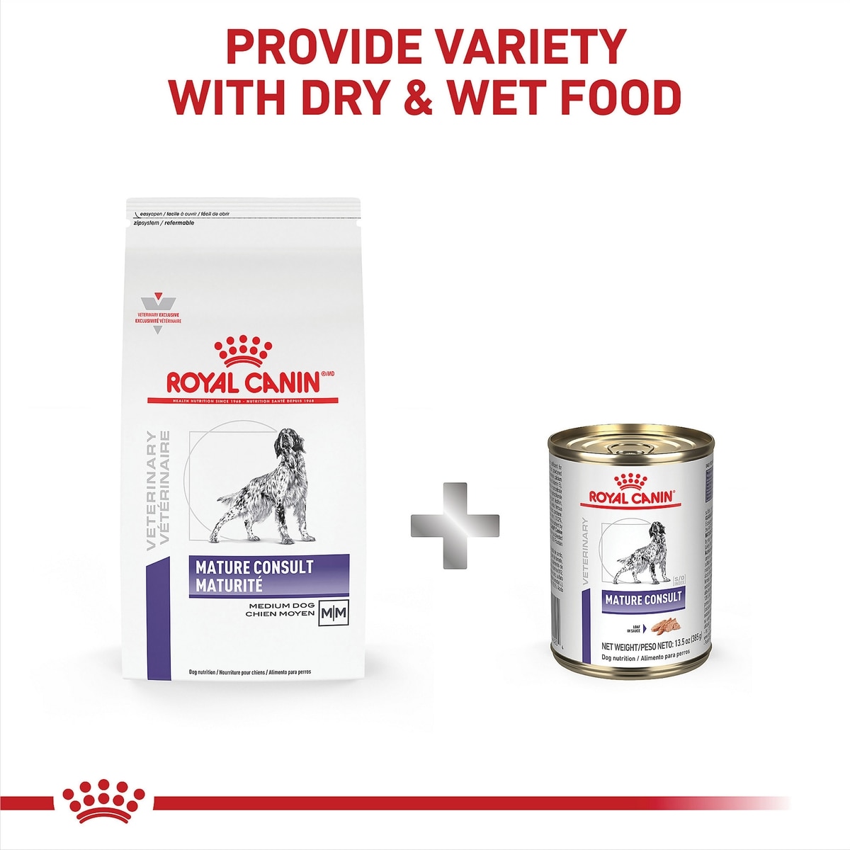 - Royal Canin Veterinary Diet Adult Mature Consult Loaf in Sauce Canned Dog Food, 13.5-oz, case of 24$102.96 Chewy Price$97.81 Autoship Price