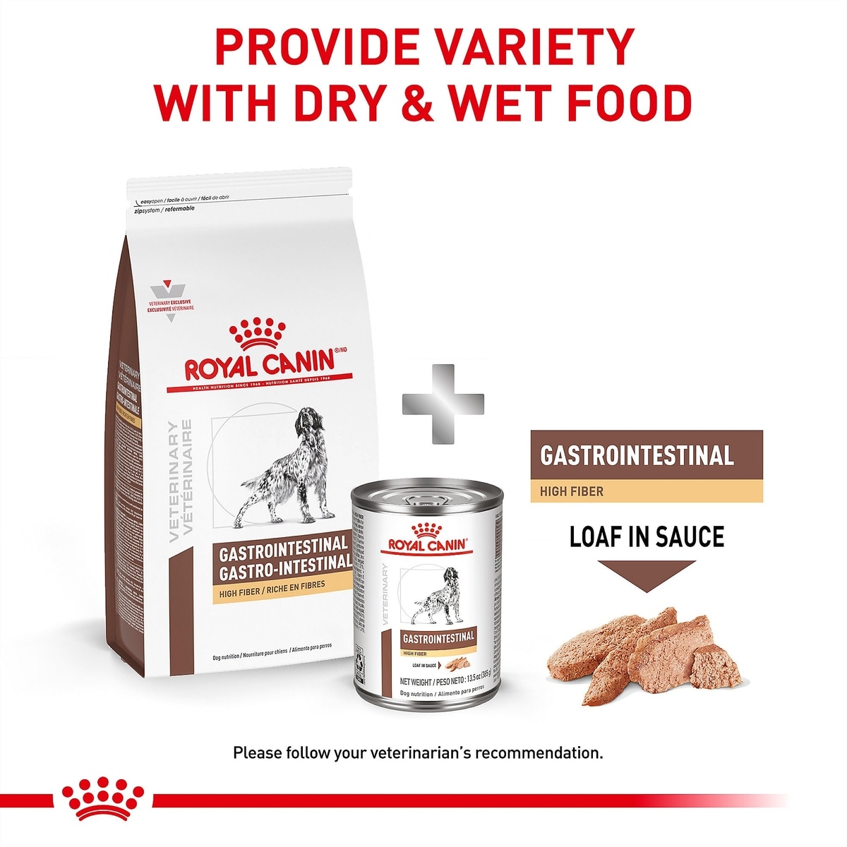 - Royal Canin Veterinary Diet Adult Gastrointestinal High Fiber Dry Dog Food, 17.6-lb bag$104.99 Chewy Price$99.74 Autoship Price