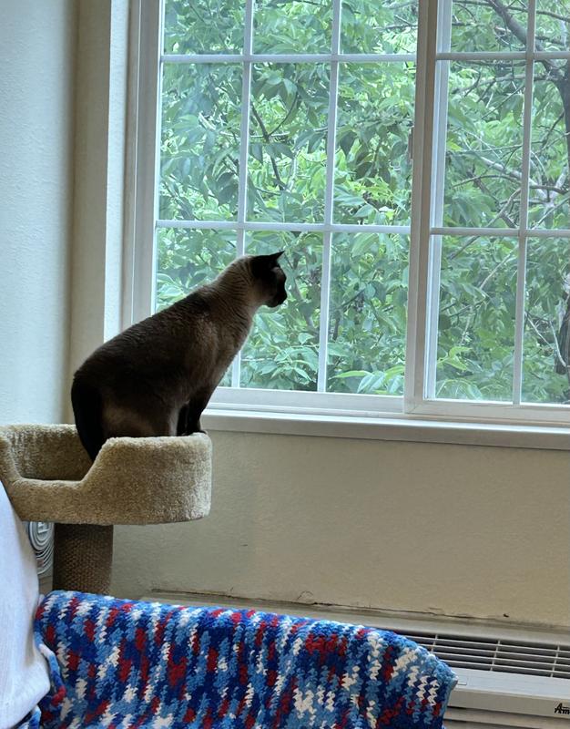 The item just arrived so I have yet to know if the cat likes it (hopeful) but I love it. We got a new cat 4 months ago and I work from home. Our cat loved to sit
