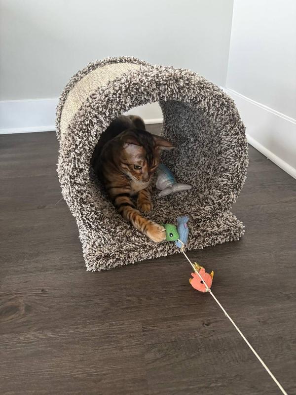 I got this scratching cat tunnel in hopes that my cats would scratch the carpeted tunnel or sisal instead of my floor carpet. Cats love hiding out in the tunnel