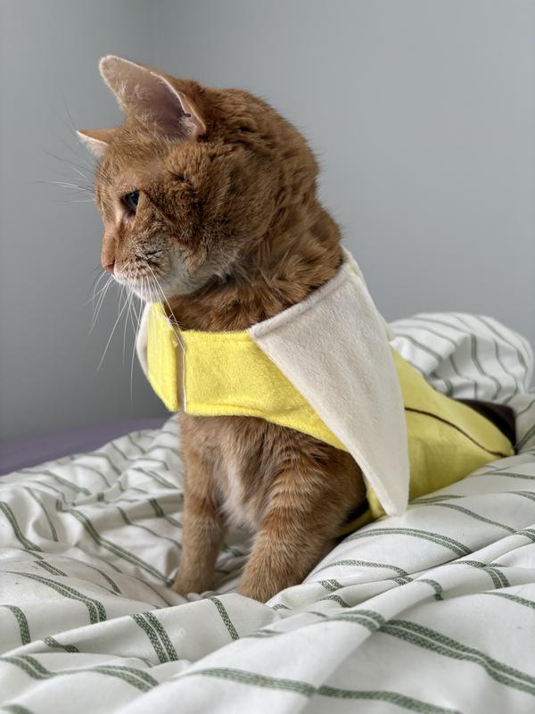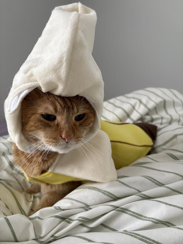 Super cute banana suit but the hat is a little too white and pointy if you see what I'm getting at. I love the idea of a banana costume but wasn't super pleased to have my dog looking like a little white supremacist. Will probably just have her wear the suit without the hat.