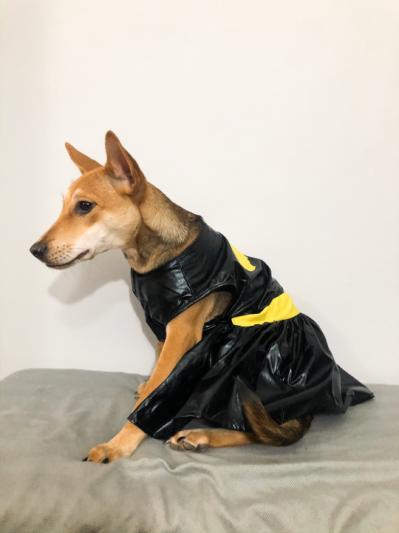 - Officially licensed, two-piece costume will transform your mysterious furry friend into the caped crusader’s female counterpart.