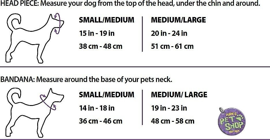 I ordered 2 sizes that should have fit my dogs. The hats were way too small. The largest size didn't fit our smallest dogs. We upsized and they were still too s