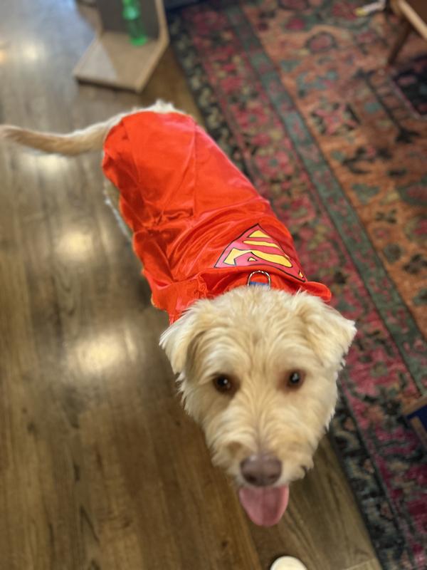 Because my dog looks a lot like Krypto, I couldn’t resist getting this costume for him. I’m impressed both by the quality and by the speedy delivery from Chewy. I ordered with regular shipping and literally had it the next day!