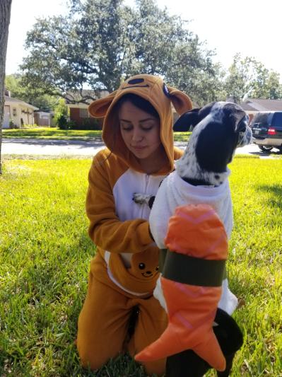 He just got surgery on Monday so I was looking for not so crazy costumes that’ll be more stress for him (the picture was taken day before surgery) and he actually