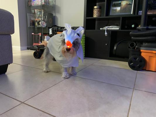 - This costume is tailored for pets of all shapes and sizes, so every furry friend can channel their inner ghostly companion.