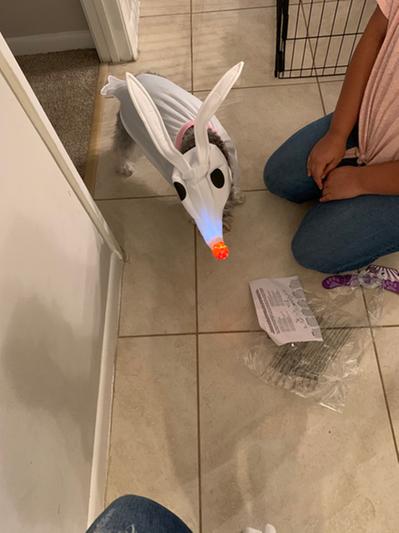 If you are thinking this will be a cute costume for your dog and will look like the picture they have displayed then you are wrong! Save yourself the money and frustration because this is not worth it. The light didn’t work on mine when it showed up, the ears do have wire in them but they do not stick up at all like it shows in the picture, the head in not stuffed so it’s just the ugliest flat head, and last there is no strap around the chest so the cape just falls off. By far the worst costume I have ever gotten and somehow still the most expensive! If I could have gave it less than one star I would have.