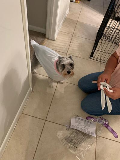 Our dog (a 10 pound dachshund) hated this thing. He hated the heavy hat since it's front-heavy and drooped into his eyes. The hat lasted for one photo. He also