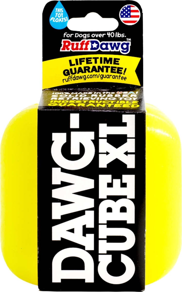 The durable cube is crafted from 100% solid rubber and is free from phthalates, latex, and BPAs.