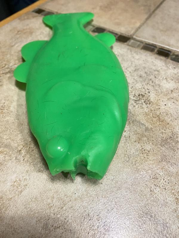 We thought this would last for our 5yo "aggressive chewer." He loves all toys with a fish theme and this one was no exception. Unfortunately, he chomped off the tail and then the head... Within a few minutes, we had to rescue it to prevent total demolition. We've now taken it away as it seems like he could easily bite off and swallow a chunk. (What is this made of anyway?) We did like the idea - We initially hid it in his toy sand box (outdoors), which he absolutely loved - it was a great treasure, but only for a short time. We won't be purchasing this again.