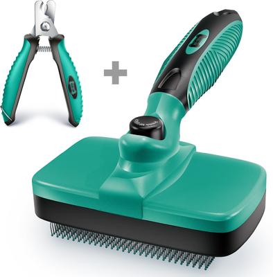 Ruff 'N Ruffus Self-Cleaning Pet Slicker Brush & Nail Clippers, Aqua
