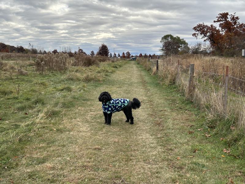 I love these Ruffwear jackets. They keep my dog warm at the dog park and cover his belly so if it’s wet it keeps him clean and dry. I’ve gotten him a few of these