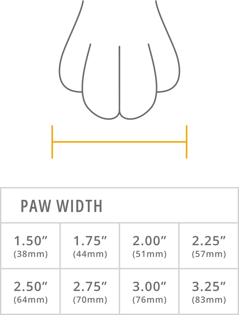 It is recommended to measure the widest part of your dog's paw and compare the dimensions to the pictured size chart. Note that paws can vary in size, so be sure to measure all four. See the included photos for more details.
