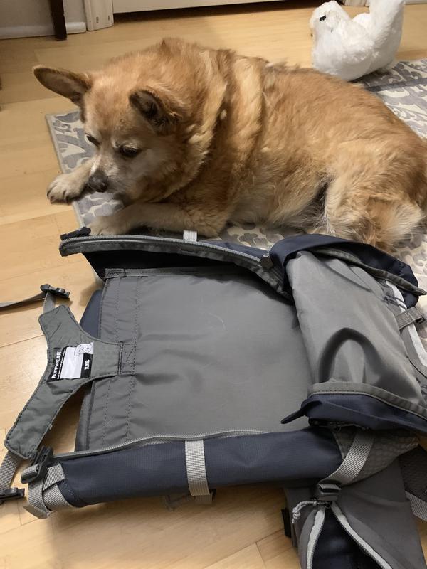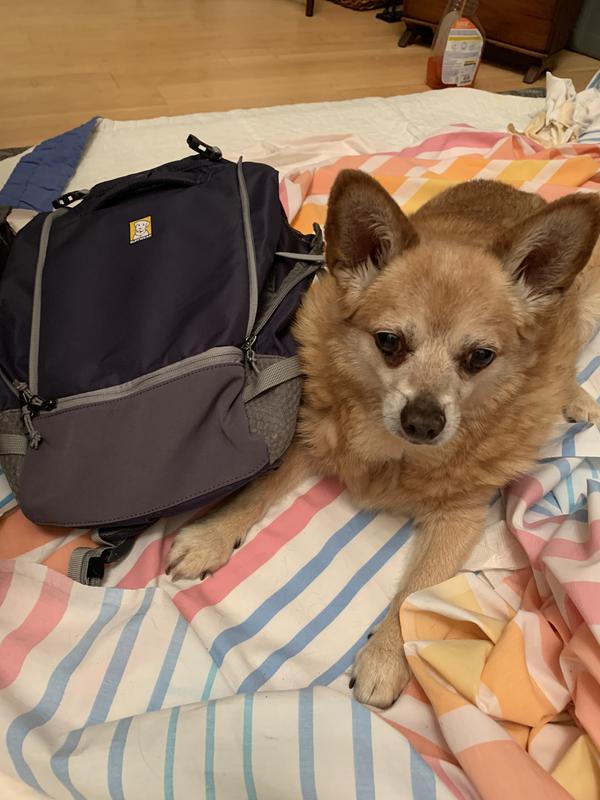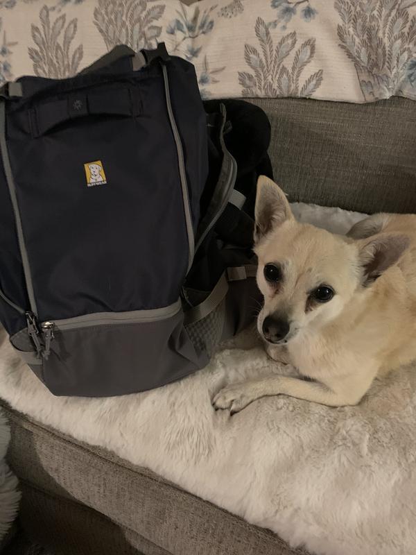 The Ruffwear backpack is just right for our 24 pound Frenchie. My son uses it to help transport her around the neighborhood now that the weather is cold. He has