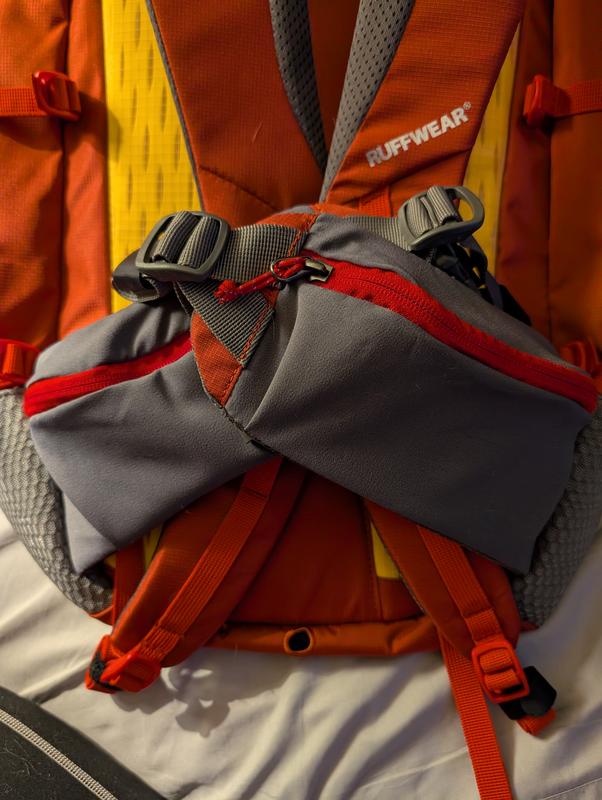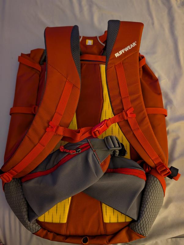 I absolutely love the quality of this backpack. It is sturdy yet light with the right amount of storage options. I haven't had the chance to take it out on the trail yet - I am getting my dog used to it. So far so good. It has a padded breathable back for the human and feels very comfortable. Breathable sides for your pup and a built-in collar to keep them secured. Both hip straps have pockets that my cell phone can fit in along with other smaller items. And, there's another zippered storage area on the bottom that easily holds a water bottle and some snacks. Looking forward to updating this once we go adventure!