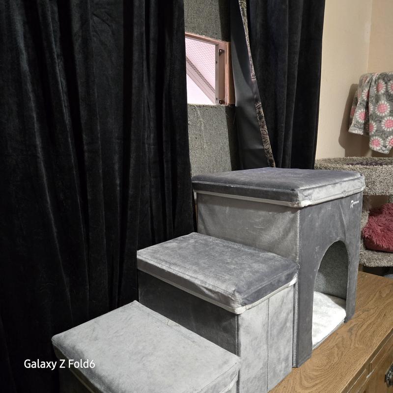 RYPetmia 3-Step Foldable Dog & Cat Stairs with Storage & Bed, Gray