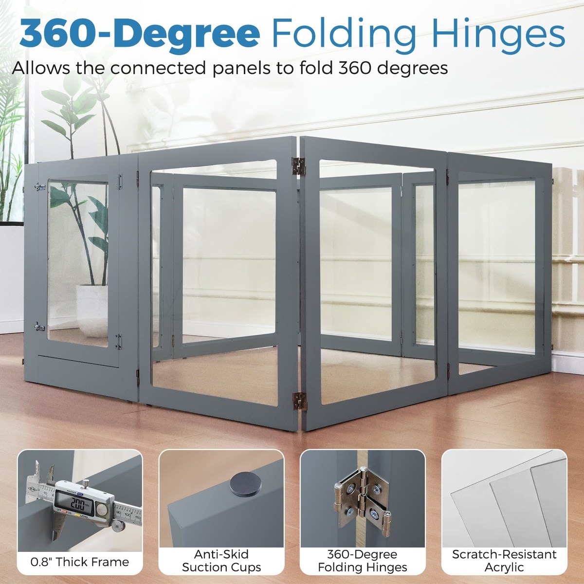 RYPetmia Heavy Duty Clear Acrylic Dog, Cat & Small Pet Playpen with Door, Grey, Medium, 8-panel