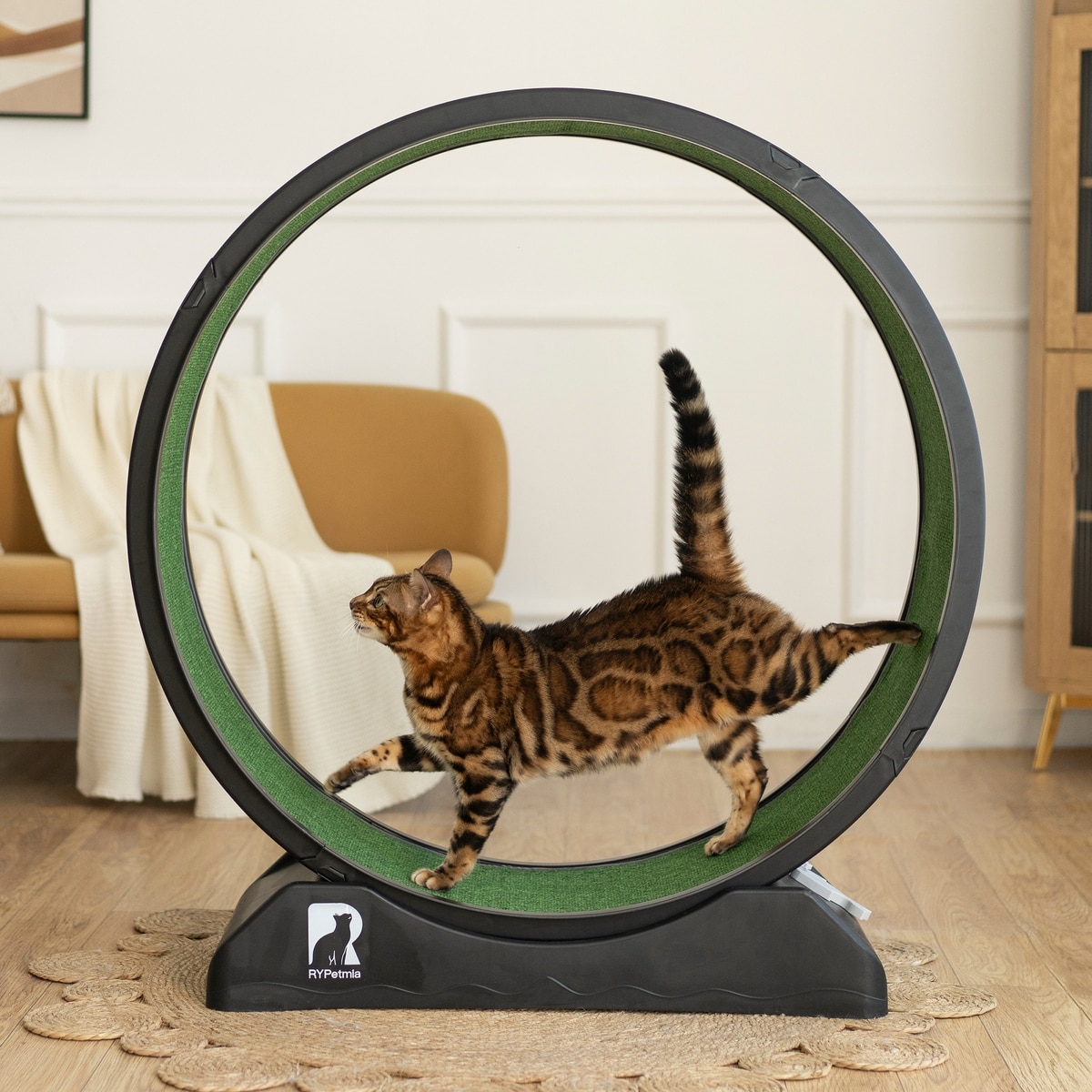 RYPetmia Indoor Cat Exercise Wheel with Interactive Toy, Black, 38.5 x 14.5 x 40.6-in