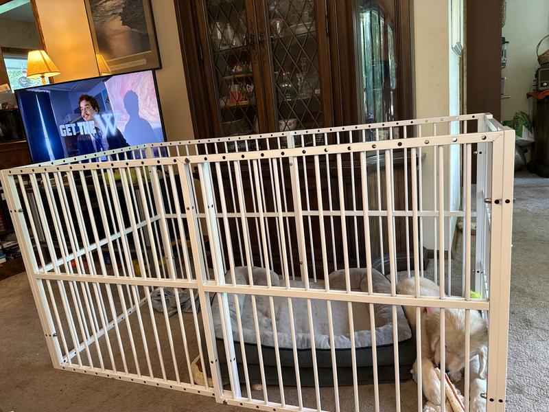 We needed something sturdy for our new jack russell terrier puppies! Looks nice and dogs can't climb out. They are safe in it!