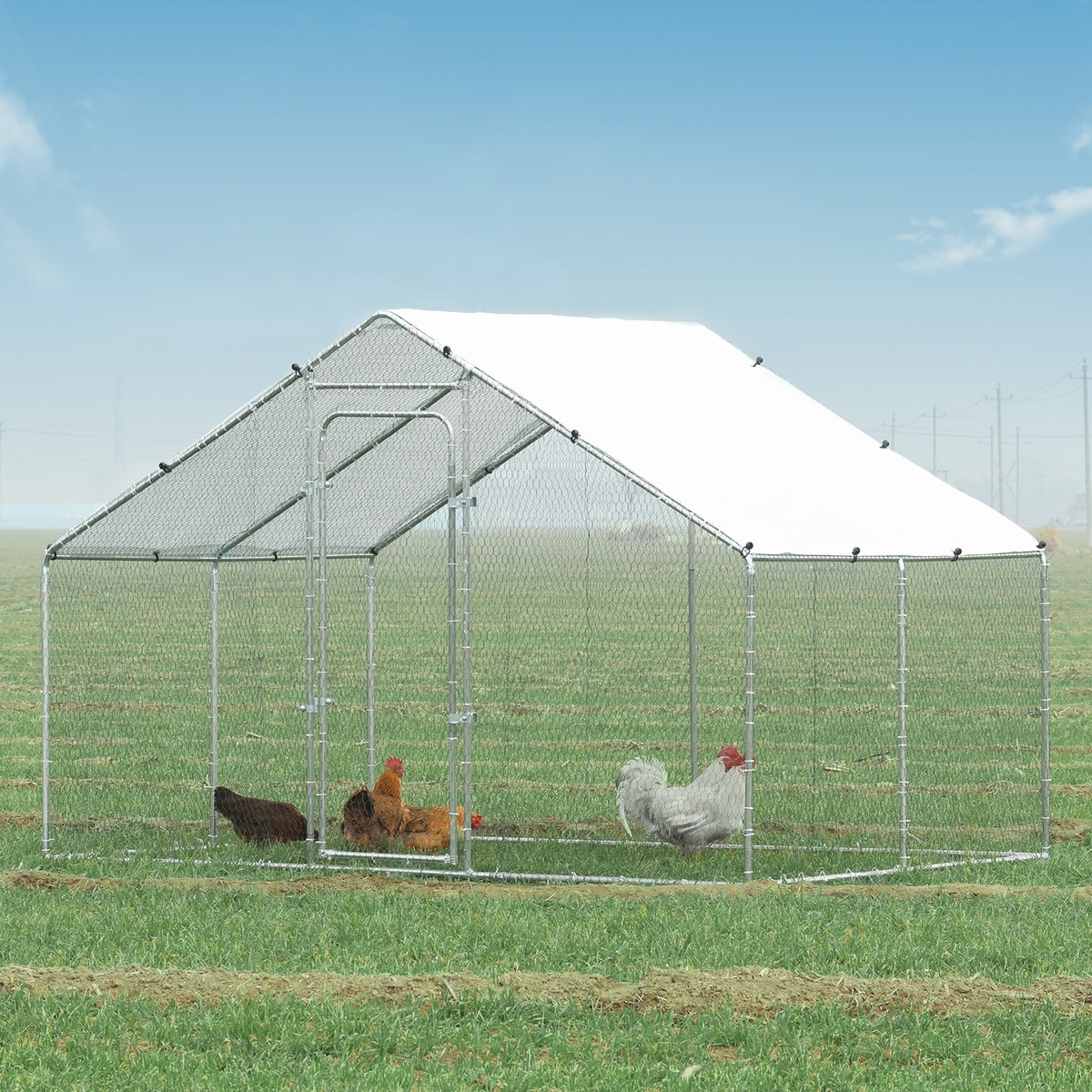 RYPetmia Outdoor Metal Chicken Coop, 15 Chickens Capacity