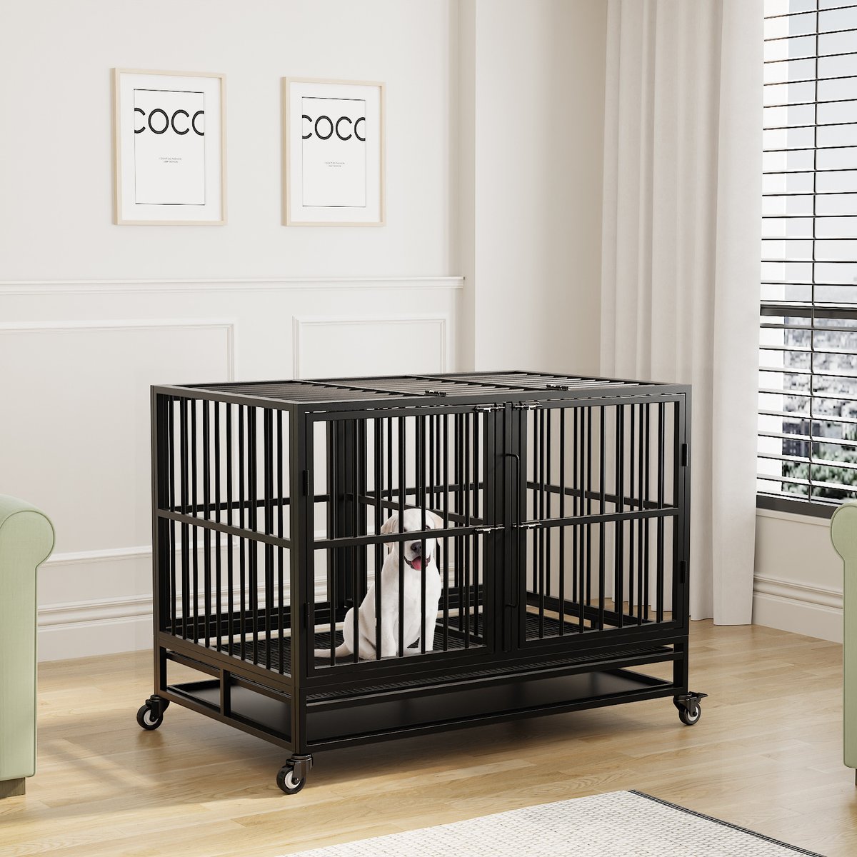 RYPetmia Rolling Dog Crate with Pull Out Trays, Black, 45.7 inch