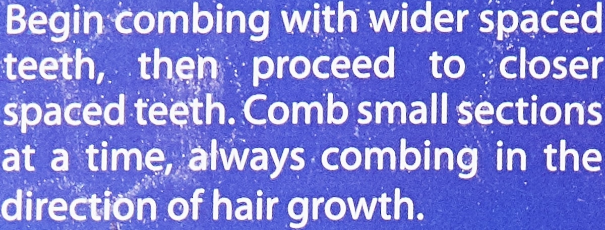 Begin combing from the head, working toward the tail and down the legs. Comb small sections at a time, always combing in the direction of hair growth until all tangles are removed.