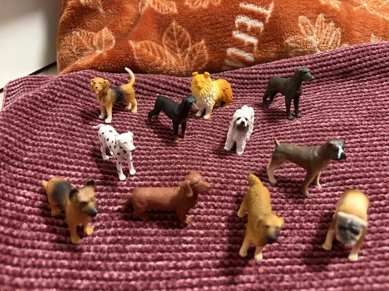 My grandson loved the tube of dogs. He told me about the breeds and looked them all up online. He grouped the dog breeds and of course played with them.
