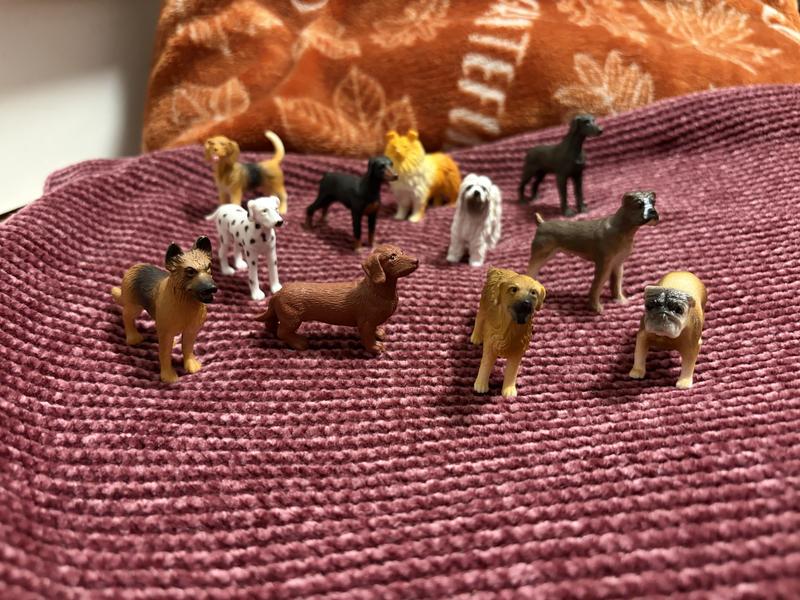 These little dogs are so cute. My son loves animals and has so much fun playing with these. They are all different breeds but all about the same size. It’s nice
